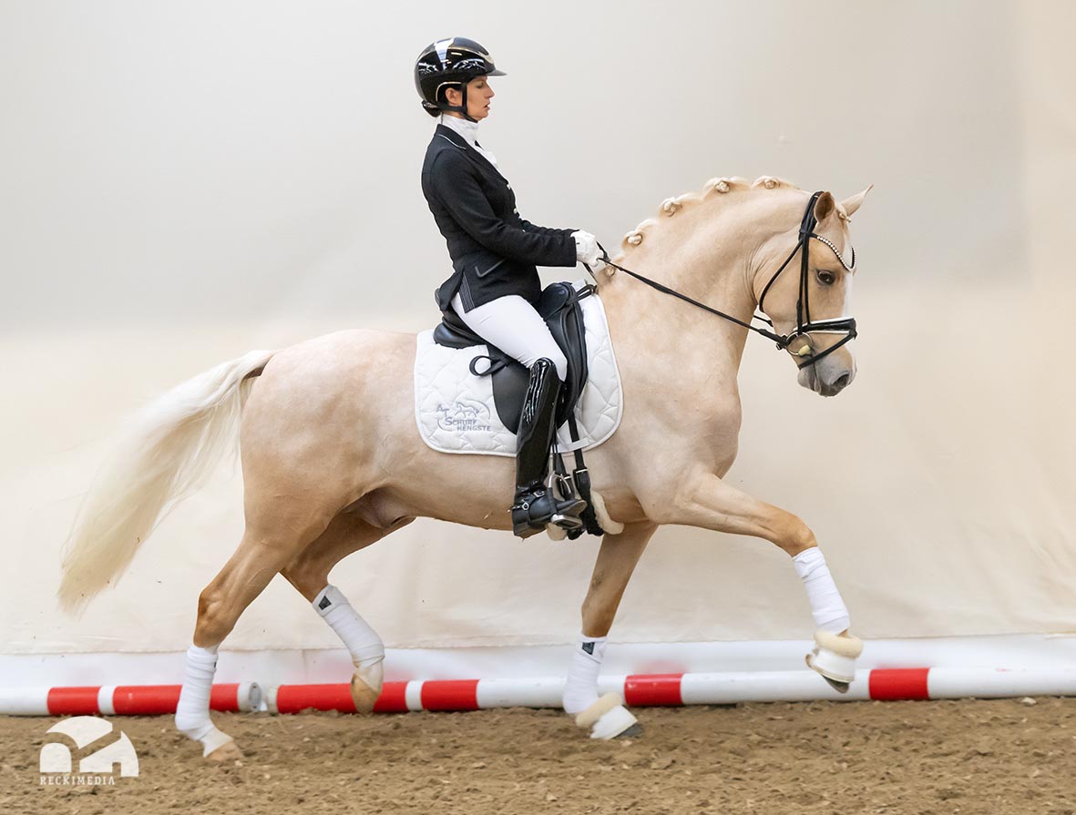 Damaszener K WE wurde Prämienhengst und Preisspitze der Ponyforum Hengsttage 2020. Er verfügt über drei überdurchnittliche Grundgangarten und einem Pedigree zum dahinschmelzen. Sowohl im Trab als auch im Galopp präsentiert er seine enorme Bewegungsgüte stets mit energisch unter den Schwerpunkt fußendem Hinterbein und großzügiger Schulterfreiheit. Den Schritt zeigt er vom Fleck weg, gelassen und durch den Körper schreitend, mit Top Interieur Werten. Die vorbildliche Rittigkeit in Kombination mit der herausragenden Bewegungsqualität dieses Palomino Traumhengstes begeistert jeden Betrachter.