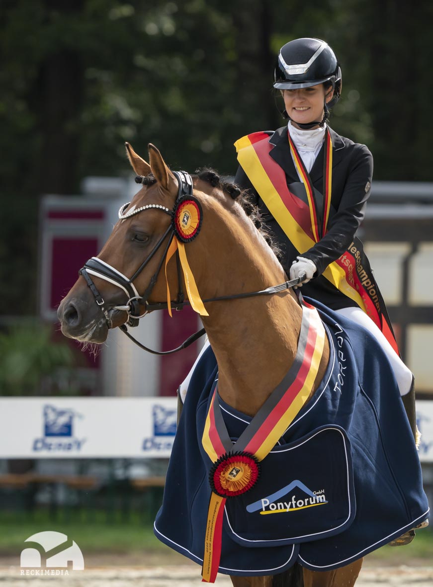 Date de Luxe AT siegte mit Jaqueline im Sattel im Finale des Bundeschampionats 2020 für dreijährige Reitponyhengste mit der Traum-Endnote 9,2. Die Juroren waren vom Auftritt des Youngsters hellauf begeistert. Für den Trab erhielt der Dating AT NRW Sohn die 9,5, eine glatte 10 gab es für den Galopp. Für die Ausbildung vergaben die Richter die sehr gute Note 9,5. Der Schritt und das Gebäude wurden mit 8,5 bewertet.