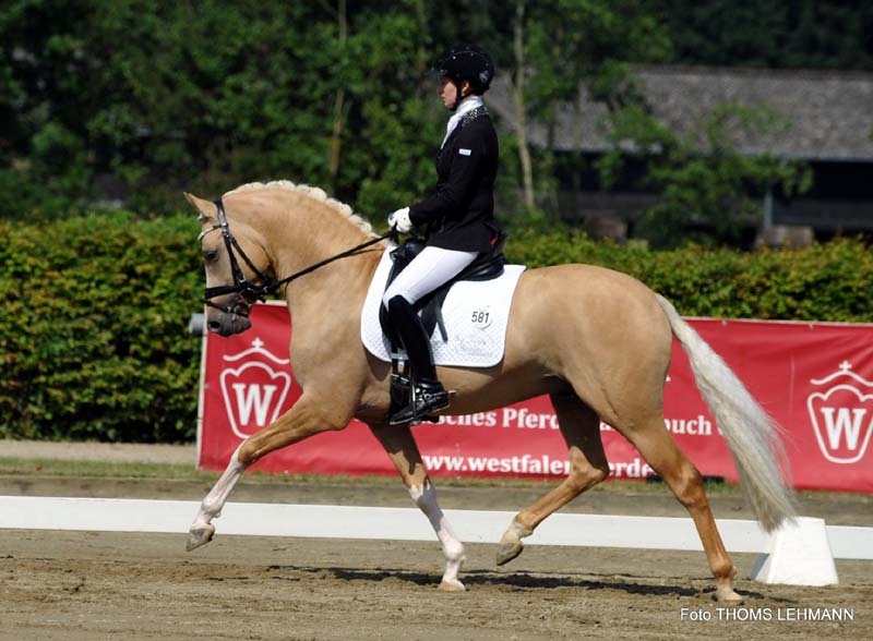 Dating AT wurde Champion der Westfälischen Hauptkörung für Reitponys 2014, aus dem 1. Körjahrgang des Doppelbundeschampions Dimension AT, der es seinem Sohn bereits 2010 als Siegerhengst vorgemacht hat. Auf Leistung geprägt, wusste der wunderschöne Palomino jederzeit in allen Belangen zu begeistern. Typ, Ausdruck, Interieur, Bewegungsgüte: In der Gesamtheit, alles Komponenten, die Dating AT zu einem besonderen Hengst machen. Er ist ein im eleganten Typ stehender Sieger mit großen Partien und schönem Seitenbild. Die überragenden Grundgangarten sind geprägt durch eine perfekte Hinterhand und unerschütterlichem Takt in sehenswerter Bergauftendenz und großer Übersetzung.
